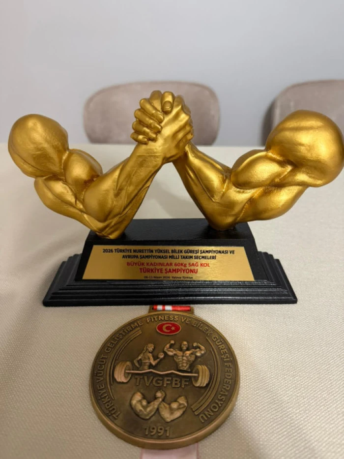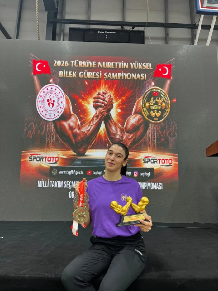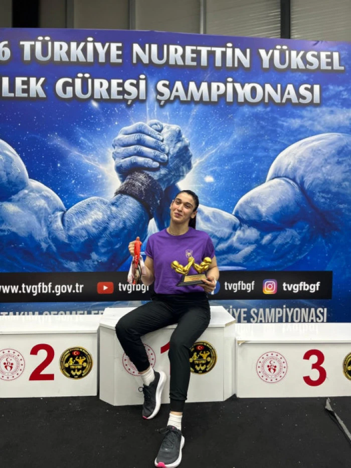 Akyazılı Kader Soydan, Türkiye Bilek Güreşi Şampiyonası’nda her iki kolda da altın madalya kazanarak Türkiye şampiyonu oldu.
