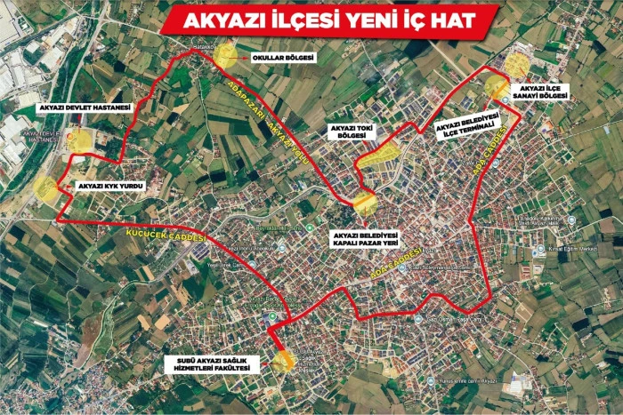 Akyazı’da vatandaşların ulaşımını kolaylaştıracak yeni minibüs hattı açıldı. Büyükşehir Belediyesi, Akyazı Belediyesi ve Akyazı Şoförler Odası’nın birlikte yürüttüğü çalışma kapsamında Akyazı İlçe Terminali ile pazaryeri, okullar bölgesi, devlet hastanesi, KYK öğrenci yurdu, Küçücek Caddesi, üniversite ve Gazi Süleymanpaşa Mahallesini kapsayan 14 kilometrelik yeni güzergahta seferler bugün itibari ile başladı.