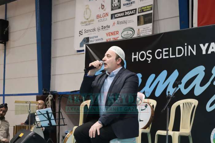 Akyazı Kaymakamlığı, Akyazı Belediyesi, İlçe milli eğtim müdürlüğü, İlçe gençlik ve spor müdürlüğü ve ilçe müftülüğünce düzenlenen Hoşgeldin Ya Şehr-i Ramazan Tasavvuf müziği konseri düzenlendi. Dün akşam Atatürk kapalı spor salonunda 20.00'de vatandaşlarında yoğun ilgi gösterdiği konser Tasavvuf müziği sanatçısı Tarık Genç ve Pendik Aliya İzzet Begoviç camii imam hatibi Türkiye birincisi Kurra Hafız İbrahim Deniz 'in katılımlarıyla gerçekleşti.