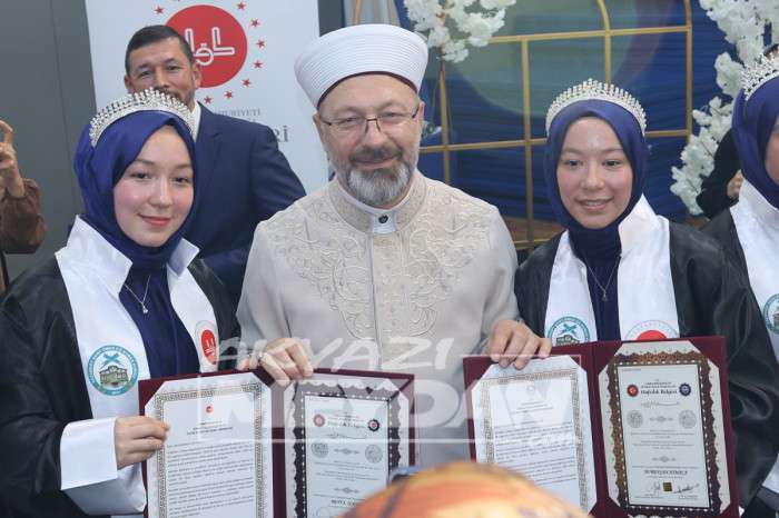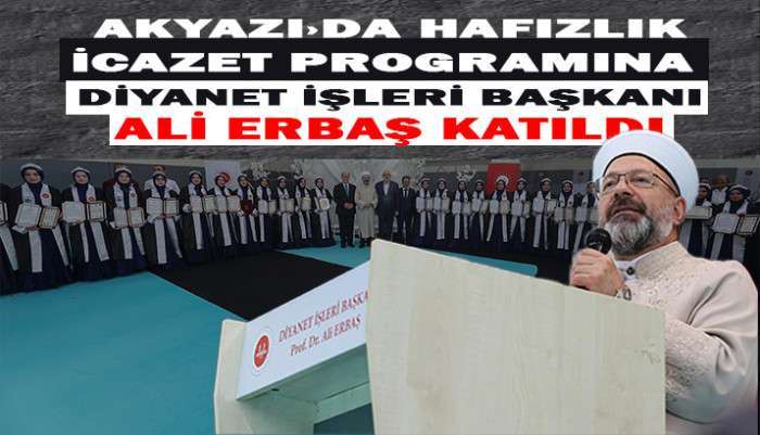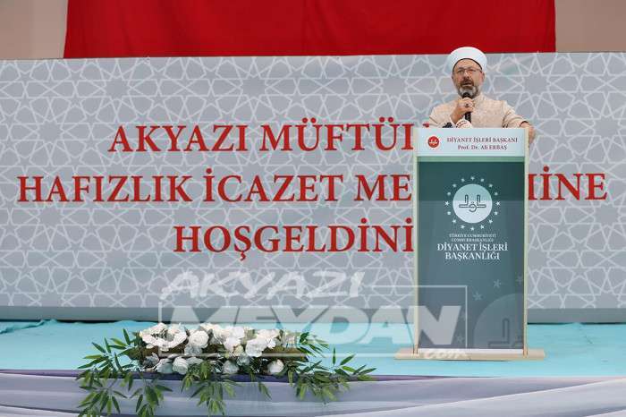 Diyanet İşleri Başkanı Prof. Dr. Ali Erbaş, Akyazı’da Pazarköy Şehit Ömer Atmaca Kız Kur’an Kursu’nda hafızlığını tamamlamış öğrenciler için düzenlenen “Hafızlık İcazet Merasimi”ne katıldı. Merasimde 25 hafıza icazet verildi.