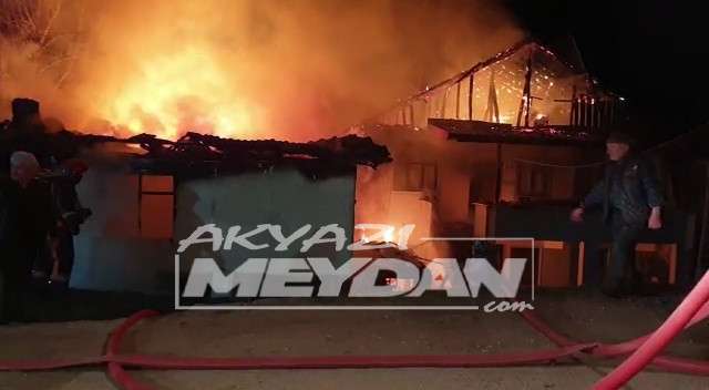 Akyazı ve Hendek itfaiyesininde destek verdiği yangına 3 yangın söndürme 1 tanker ve 11 personel müdahale etti 3 saatlik çalışmanın ardından tamamen söndürülen yangında bodrum katlı ahşap ev küle dönerken yanında bulunan evin çatısıda tamamen yanarak küle döndü.