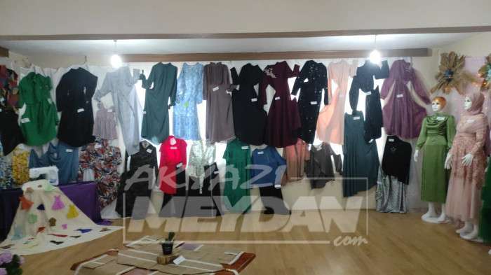 Altındere Merkez cami Kurs binasında gerçekleştirilen sergide, ev kadınları tarafından yapılan giyim ürünleri sergilendi.