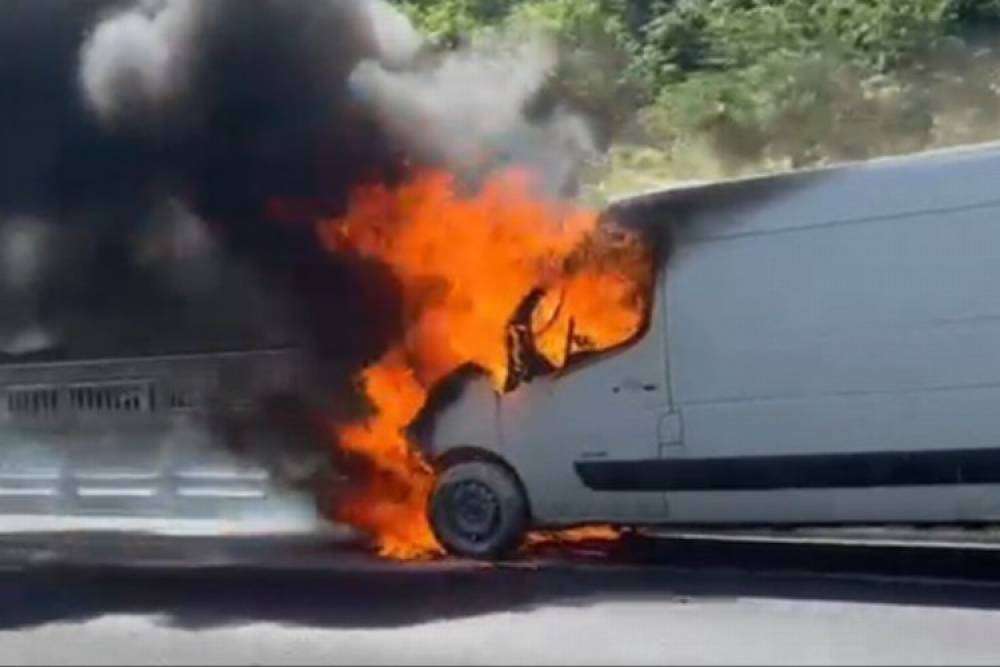 Anadolu Otoyolu Bolu Dağı mevkisinde seyir halinde olan minibüs bilinmeyen bir nedenden dolayı alev aldı. Sefer DEMİR / Haberözel TV