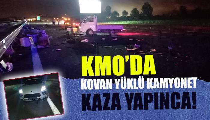 KMO'da gece meydana gelen kazada hakimiyeti kaybolan kamyonet bariyerlere çarptı. Kamyonette bulunan kovanlar yola saçıldı.