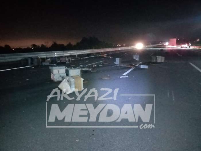 Kaza, gece saatlerinde KMO Akyazı kesimi Karasu yönünde meydana geldi. S.B'nin kullandığı arı kovanı yüklü 81 KC *** plakalı kamyonetin arka lastiklerinden biri yerinden çıktı.