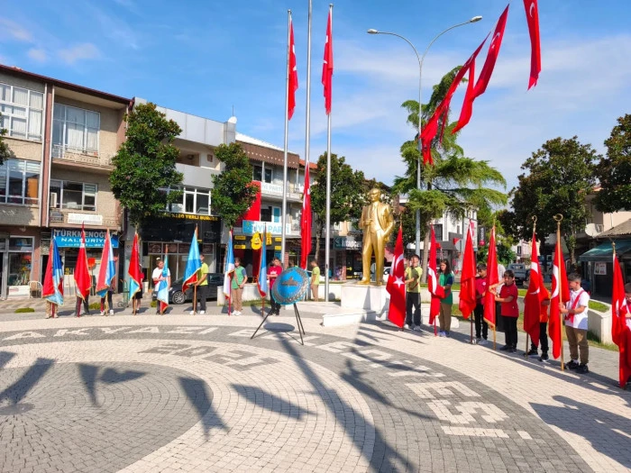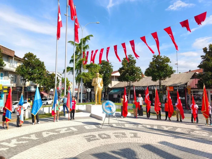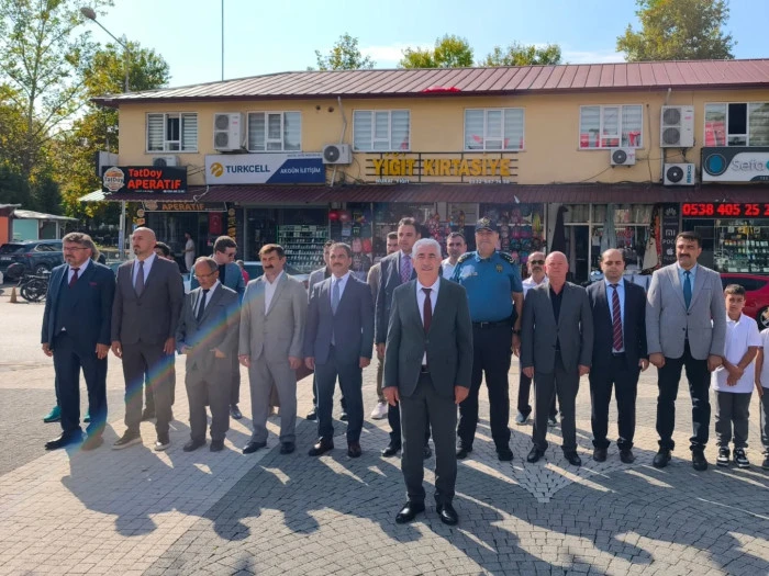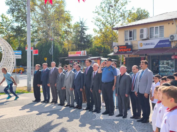 Akyazı'da İlköğretim Haftası, Atatürk Anıtı önünde düzenlenen çelenk sunma töreniyle coşkuyla başladı.