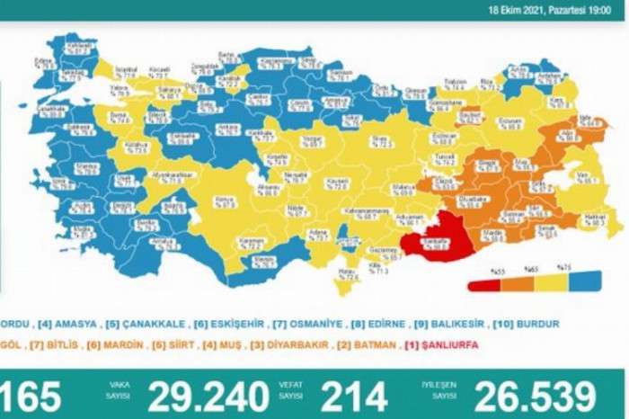 Sağlık Bakanı Fahrettin Koca, bakanlığın resmi verilerine göre vaka sayılarını detaylı tablo halinde başlattı. Paylaşılan detaylı tabloya göre vaka sayısı 29 bin 240, iyileşen hasta sayısı 26 bin 539, vefat edenlerin sayısı 214 olarak açıklandı.