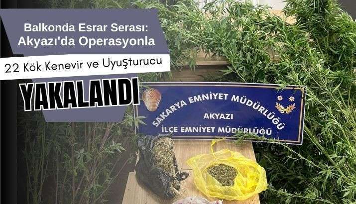 Akyazı'da polisin düzenlediği operasyonda, bir evin balkonunda saksıda yetiştirilen 22 kök kenevir ve evde kurutulmuş yüklü miktarda esrar ele geçirildi.