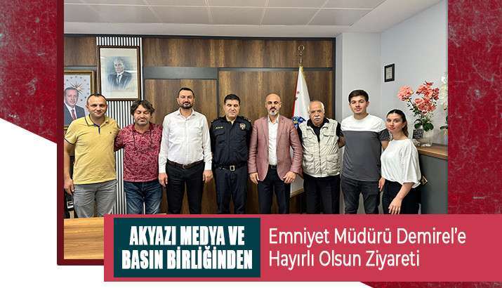 Akyazı Medya ve Basın Birliği Başkanı ve Akyazı Haber İmtiyaz Sahibi Ali Yıldırım, Akyazı Havadis Genel Yayın Yönetmeni Ömer Dere, Akyazı Halkın Sesi Sahibi Ali Şanlı, Radyo Akyazı'dan Hüseyin Yazıcı, Akyazı Meydan'dan İsmail Güler, Akyazı Haber Genel Yayın Yönetmeni ve Karapürçek Anadolu Ajansı Temsilcisi Mine Yıldırım, muhabirler Samet Yıldırım ve Zeynep Sarı’dan oluşan medya ekibi geçtiğimiz günlerde göreve başlayan İlçe Emniyet Müdürü Yılmaz Demirel’i makamında ziyaret ederek hayırlı olsun dileklerinde bulundular.