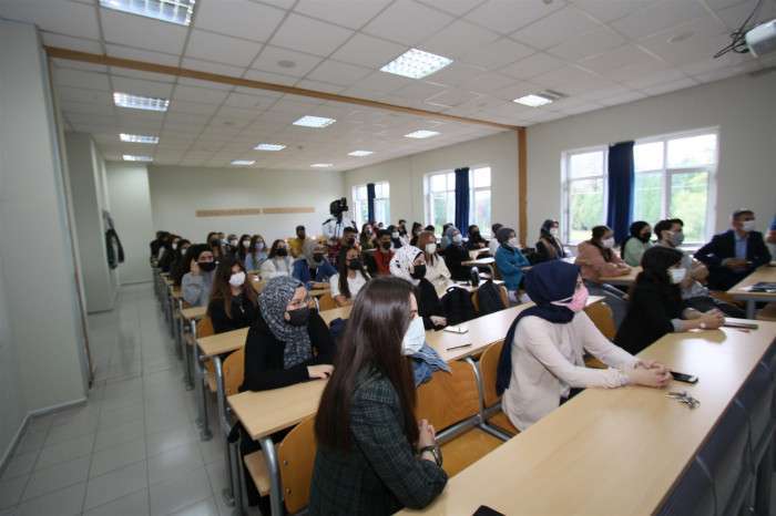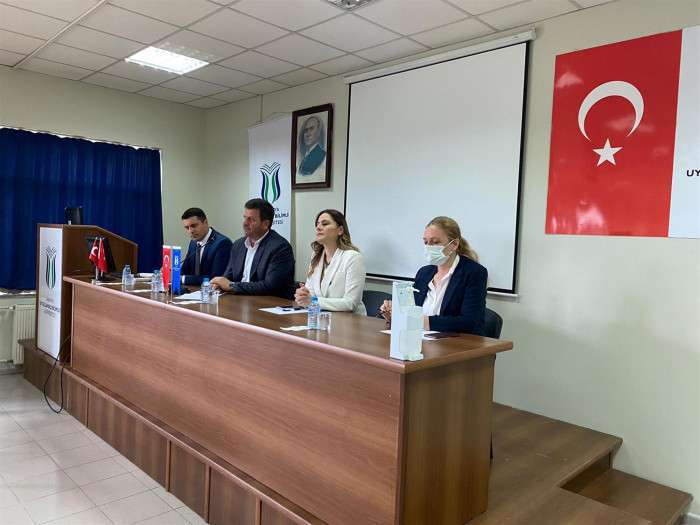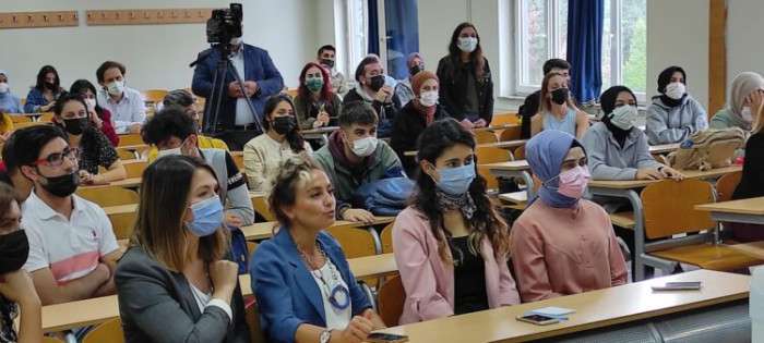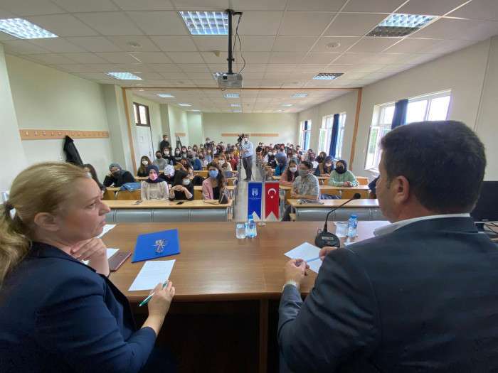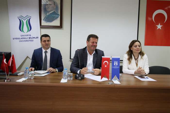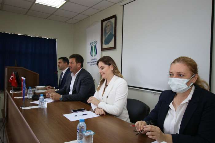 Akyazı Belediye Başkanı Bilal Soykan’a konuşmasına fakülte dekanı Prof. Dr. Yurdanur Dikmen, Akyazı Meslek Yüksekokulu Müdürü Prof. Dr. Azize ALAYLI ve fakülte öğretim görevlileri eşlik ettiler. Ziyaretleri sebebiyle Başkan Soykan’a konuşmaları sonrasında teşekkür belgesi takdim edilerek günün anısına öğrencilerle topluca hatıra fotoğrafı çekildi.