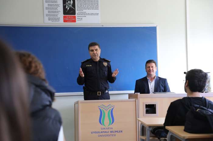 Akyazı Belediye Başkanı Bilal Soykan, Akyazı İlçe Emniyet Müdürü Yılmaz Demirel ve İlçe Sağlık Müdürü Şeyda Tok ile birlikte SUBÜ Sağlık Bilimleri Fakültesi ve Sağlık Hizmetleri Meslek Yüksekokulu tarafından düzenlenen ilk ders etkinliğine katıldı. Sağlık Bilimleri Fakültesi Dekanı Azize Alaylı ile birlikte öğrencilerle söyleşi gerçekleştiren Belediye Başkanı Bilal Soykan, İlçe Emniyet Müdürü Demirel ve İlçe Sağlık Müdürü Şeyda Tok, farklı şehirlerden Akyazı’ya gelen öğrencilerin ilçedeki huzuru ve mutluluğunun kendileri için çok önemli olduğunu ifade ettiler.