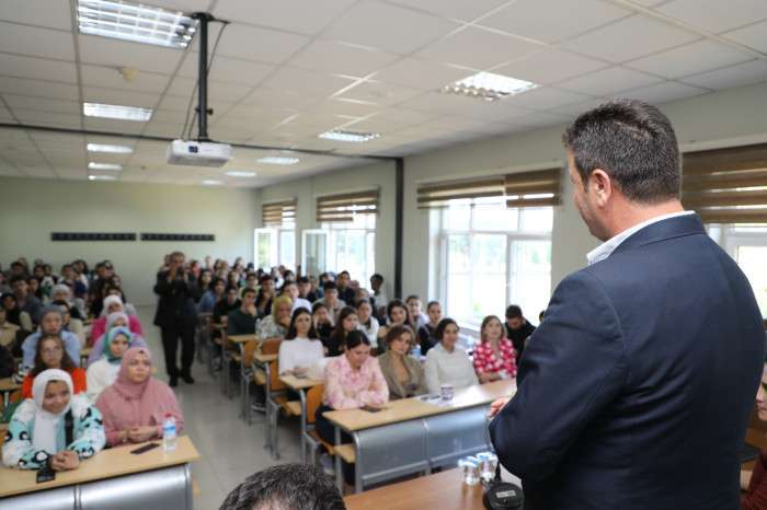 Belediye Başkanı Bilal Soykan, “ Üniversitemize yeni katılan arkadaşlarımızla birlikte öğrenci sayımımız 2 bine ulaştı. Sizlerin daha iyi şartlarda eğitim görebilmesi ve öğrenci sayımızın artabilmesi için geçtiğimiz sene fakültemizin yanında bulunan idari binanın kaba inşaatını belediye olarak biz üstlendik. Kısa süre içirisinde inşaatının tamamlanması ile bugün hem öğrenci sayımız arttı hem de sınıflarımızda eğitim daha kaliteli şekilde verilmeye devam ediyor. Sizler için her zaman elimizi taşın altına koymaya hazırız” ifadelerini kullandı.
