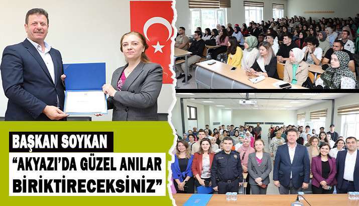 Akyazı Belediye Başkanı Bilal Soykan, “ İlçemize hoş geldiniz. İnşallah her biriniz eğitim hayatınız boyunca Akyazı’da güzel anılar biriktireceksiniz” dedi.