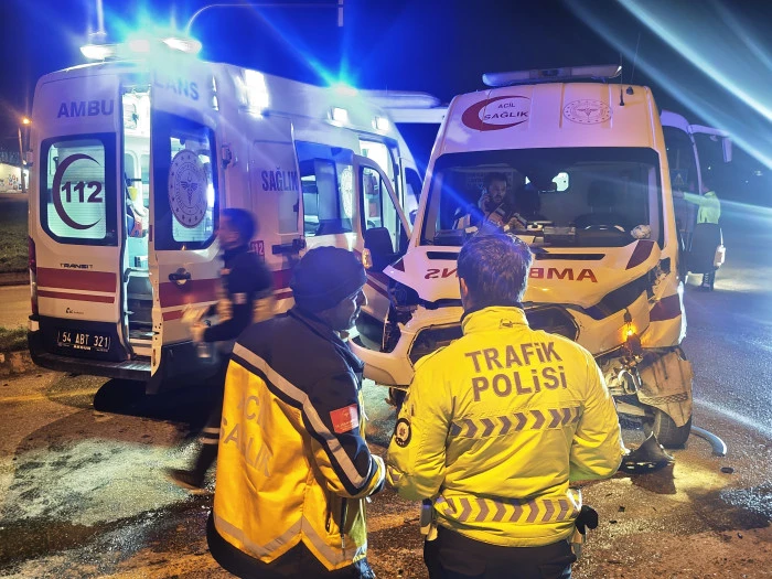 Kaza, Akyazı ilçesi Batakköy Kavşağı’nda meydana geldi. Edinilen bilgilere göre, Karapürçek yönünden Akyazı istikametine seyretmekte olan Y.E. yönetimindeki otomobil, kavşak içerisinde hasta nakli yapan ambulansla çarpıştı.