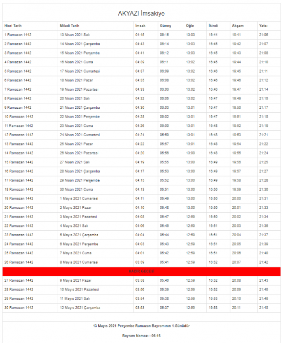 13 Mayıs 2021 Perşembe Ramazan Bayramının 1.Günüdür