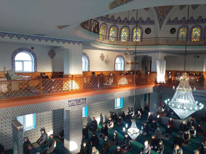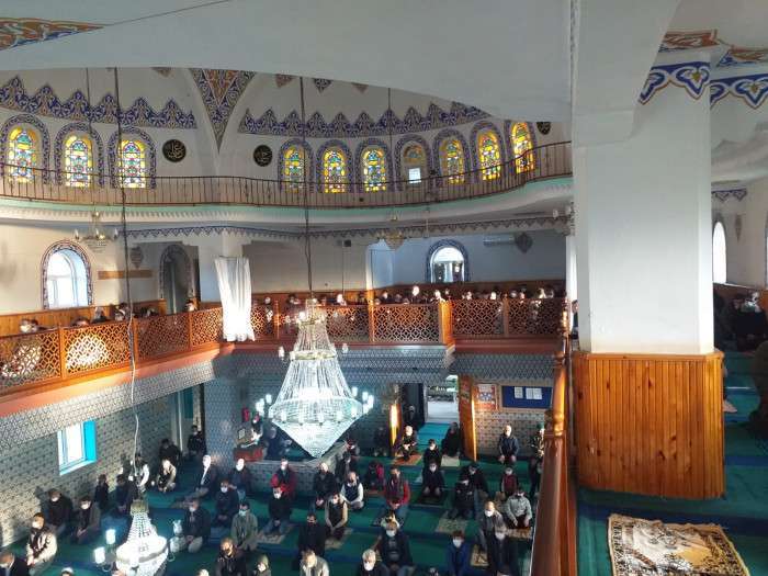 Bayram namazını kılmak için vatandaşlar erken saatlerde camiyi doldurdu salgının gölgesinde bir bayrama daha buruk bir sevinçle kavuşmanın şükrüyle eda edilen bayram namazına namazın sonrasında dualar edildi. Namaz çıkışında vatandaşlar mesafeli olarak bayramlaştılar.