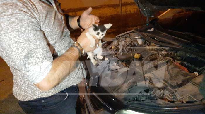 İlçe pazar yeri yanında uygulama yapan polis ve bekçiler, durdurduğu İlçe spor Müdürü Adem Altun'un otomobili'nin evraklarını kontrol ettiği sırada, vatandaş ve bekçi araçtan miyavlama sesi geldiğini fark etti. Aracın kaputunu açan ekipler, motorun alt kısmına giren iki yavru kediyi uzun uğraşlar neticesinde dışarıya çıkardı. Otomobil sürücüsü İlçe spor Müdürü Adem Altun yaptığı açıklamada : Trafik ekiplerince kontrol amacıyla durdurulduğunu belirten Altun, "Vatandaş Ve Bekçi, 'Aracın altından bir ses geliyor' dedi. Kaputu açtık bir tanesi geziyordu, diğeri ise motorun altına girmişti. Uzun uğraşlar sonunda sağ olarak çıkarmayı başardık." diye konuştu.