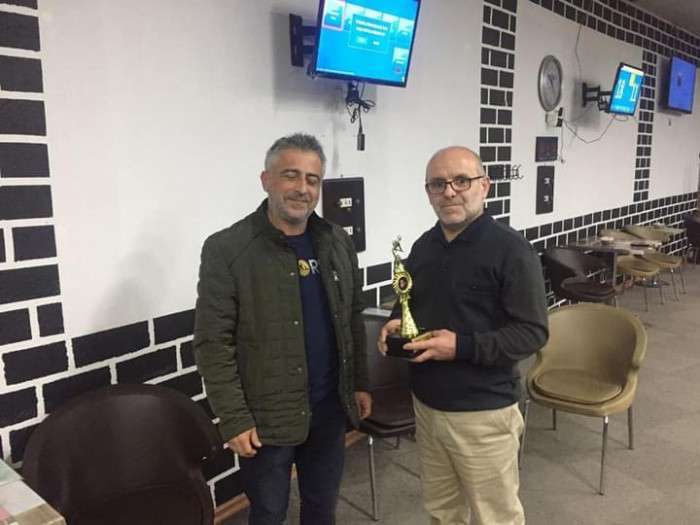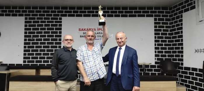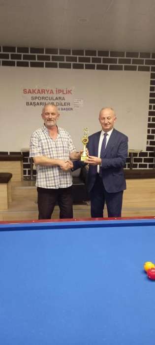 Şampiyon olan Alaattin Aydoğdu'ya kupasını Sakarya Spor Adamları Derneği Başkanı Zeki Öztürk taktim etti