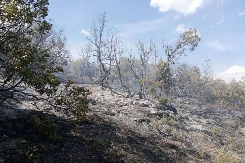 Ekiplerin çalışması sonrası söndürülen yangınında iki dekar ormanlık alan zarar gördü.
