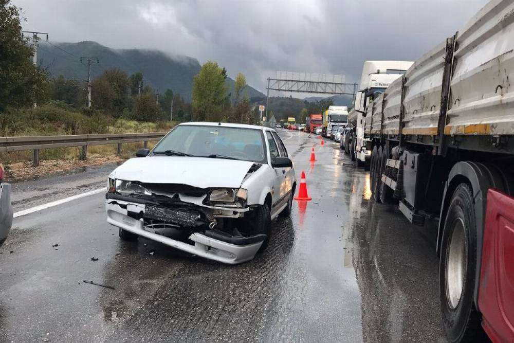 İlk kaza Pazaryeri kavşağında kırmızı ışıkta bekleyen A. C. idaresindeki 64 DV184 otomobile, Ş. A. idaresindeki 81 ABG 077 plakalı otomobil çarptı.
