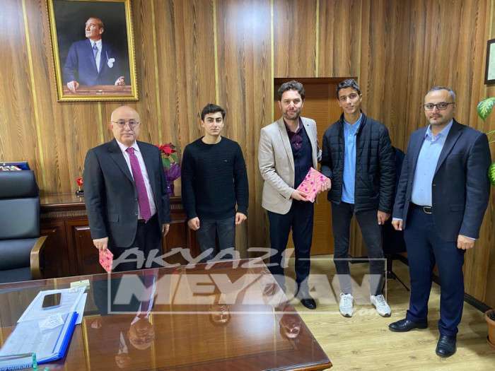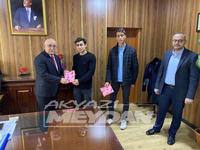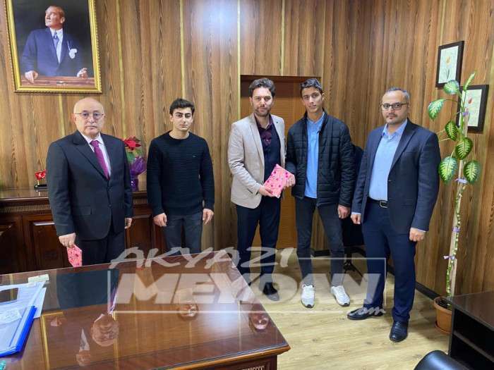 Sakarya'da düzenlenen 2022-2023 yılı Sakarya İli Bilek Güreşi Gençler A ve B Erkek kategorilerinde derece yapan Akyazı Anadolu İmam Hatip Lisesi öğrencilerinden Talha Ubeyd ÖZTÜRK ve Nuri ÖZTÜRK, Akyazı Anadolu İmam Hatip Lisesi Okul Müdürü İbrahim KALKAN ve Müdür Yardımcısı Osman KARATEKE ile beraber İlçe Milli Eğitim Müdürümüz Recep Özdemir'i ziyaret etti.