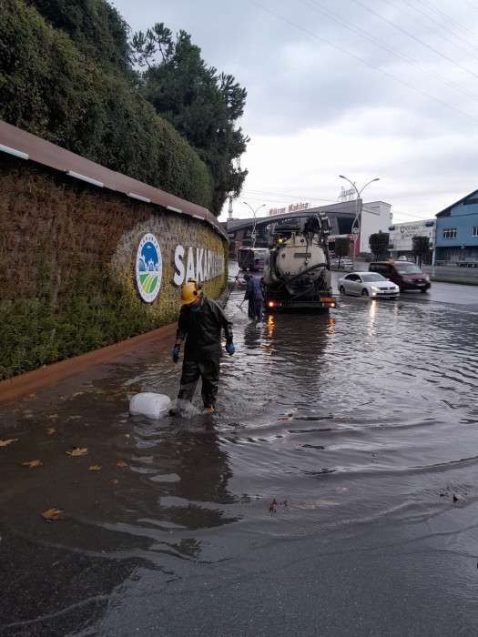 Sakarya Büyükşehir Belediyesi Su ve Kanalizasyon İdaresi (SASKİ), Meteoroloji Genel Müdürlüğü’nün 29 Eylül Cuma günü yaptığı sağanak yağış uyarısının ardından tüm ekip ve ekipmanları ile birlikte saha çalışmalarını başlattı. Metrekareye 21-75 kilogram arası yağış uyarısı öncesinde kanal ve mazgal temizliği yapan ekipler yağışların yoğun olarak hissedildiği bölgelere ise anında müdahale etti. Çok kuvvetli şekilde yağan yağışın can ve mal kaybına sebep olmaması için 182 personel, 15 kanal aracı, 33 vidanjör ve 22 kazıcı yükleyici aralıksız şekilde mesai yapıyor.