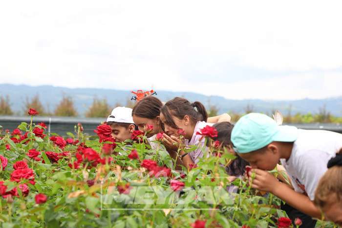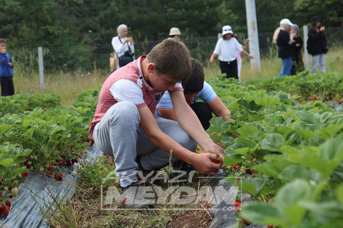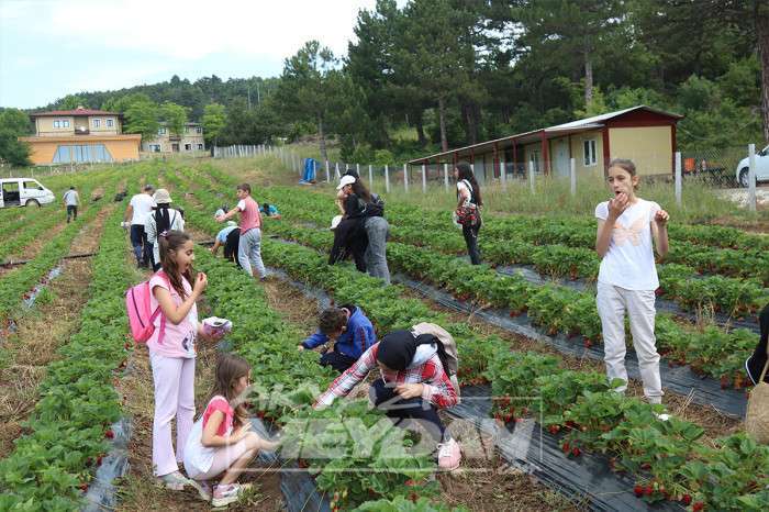 Büyükşehir Belediyesi’nin çilek üretim tarlasının nefis kokusu ile büyülenen çocuklar, ilk kez dalından çilek kopartıp yediklerini belirttiler. Çilek Tarlası, Melen Botanik Vadisi, Seracılık Mükemmeliyet Merkezi, Damızlık Manda Üretim Tesisi, Yanık Fidan Üretim Tesisi, Acarlar Longozu, UTÇEM Meyve Bahçesi, Sokak Hayvanları Rehabilitasyon ve Bakım Merkezi, İstiridye Mantarı Yetiştirme Merkezi, Salep ve Safran Üretim alanlarını 5 gün boyunca gezen geleceğin üreticisi öğrenciler, üretim aşamaları noktasında kendilerine eşlik den uzmanlardan bilgi aldılar. Büyükşehir Belediyesi’nin çilek üretim tarlasının nefis kokusu ve Seracılık Mükemmeliyet Merkezinin bereketli domates dallarından büyülenen ortaokul öğrencileri, tüketimin hüküm sürdüğü dünyada şehri üretimle buluşturan Başkan Yüce’ye teşekkür etti.
