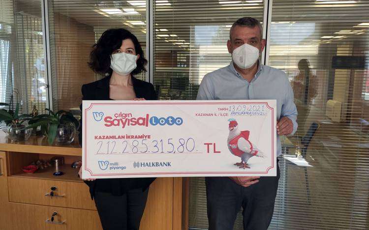 İSTANBUL (İGFA) - Sisal Şans tarafından 13 Eylül akşamı gerçekleştirilen Çılgın Sayısal Loto çekilişinde 212.285.315 TL ikramiye kazanan Denizli'deki talihli çekini teslim aldı.