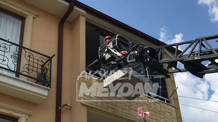 Ailenin çağırdığı çilingir kapıyı açamayınca itfaiyeden yardım istendi. Haber verilmesi üzerine olay yerine gelen itfaiye ekibi, aracın merdiveni yardımıyla daireye girip kapıyı açtı.