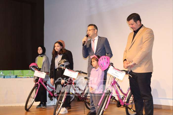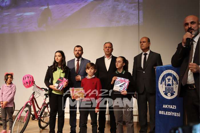 Dereceye giren öğrencilere ödülleri takdim edilirken, birinci olanlara bisiklet, ikinci olanlara tablet üçüncü olanlara ise akıllı saat hediye edildi. Akyazı Belediyesi’nin 4 Ekim Dünya Hayvanları Koruma Günü kapsamında ilk ve ortaokullar arasında düzenlediği resim ve şiir yarışmasının ödül töreni toplu fotoğraf çekimin ardından son buldu.