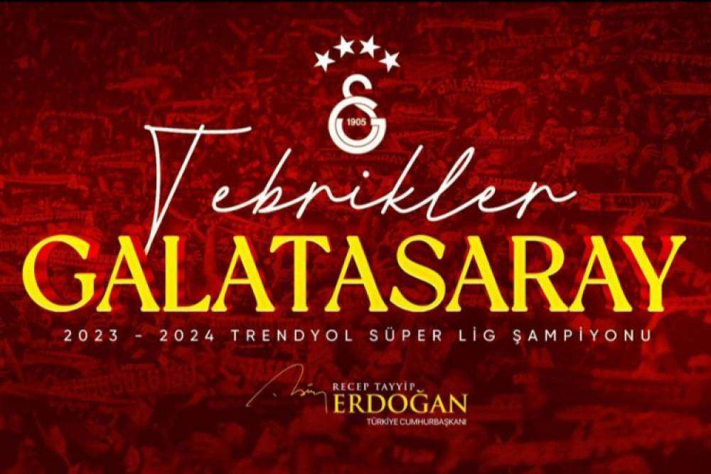 Cumhurbaşkanı Erdoğan, sosyal medya hesabından yaptığı paylaşımda, "2023-2024 Trendyol Süper Lig Şampiyonu Galatasaray’ı ve taraftarıyla birlikte tüm Galatasaray SK camiasını yürekten tebrik ediyorum." ifadelerini kullandı.