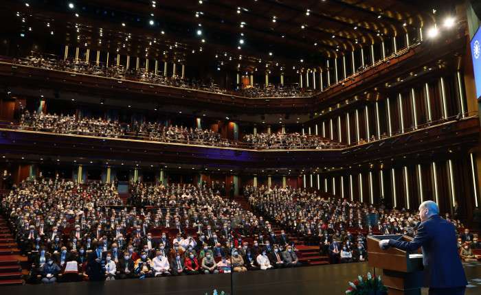 Cumhurbaşkanı Erdoğan, çözüm bekleyen sorunlar bulunduğuna işaret ederek, "Ülke olarak bir süredir kesintisiz şekilde yaşadığımız saldırılar, verdiğimiz kritik mücadeleler ister istemez önceliklerimizi değiştirdi. Buna rağmen milletimize sunduğumuz hizmetlerin çıtasını sürekli yükseltecek çalışmaları asla ihmal etmedik, etmiyoruz." dedi.