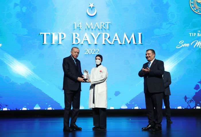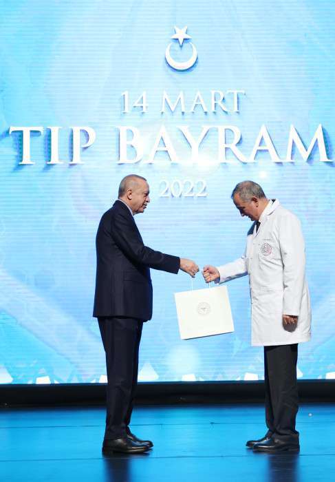 Programın sonunda Cumhurbaşkanı Erdoğan tarafından 14 Mart Tıp Bayramı Ödülleri verildi.