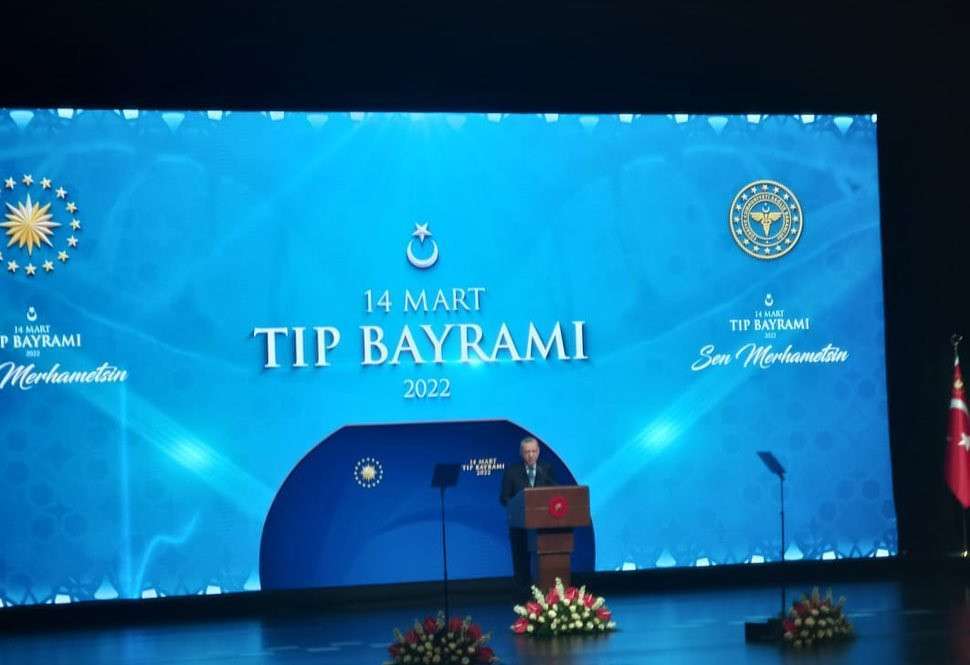 Cumhurbaşkanı Erdoğan, Beştepe Millet Kongre ve Kültür Merkezi'nde düzenlenen 14 Mart Tıp Bayramı etkinliğinde yaptığı konuşmada, hekimlerin ve tüm sağlık çalışanlarının 14 Mart Tıp Bayramı'nı şahsı, milleti adına kutladı.