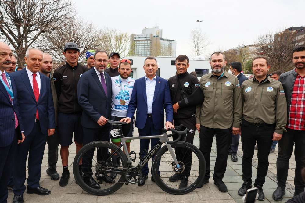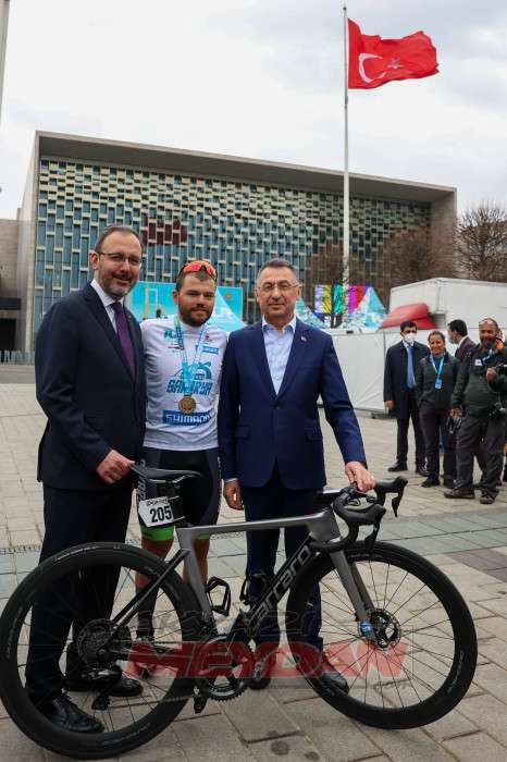 57. Cumhurbaşkanlığı Bisiklet Turu'nun "Türkiye Güzellikleri" şampiyonu olan Büyükşehir PRO Team takımını ziyaret eden Cumhurbaşkanı Yardımcısı Fuat Oktay ve Spor Bakanı Mehmet Kasapoğlu, 1915 Çanakkale Köprüsü'nden ilk geçen sporcu unvanıyla tarihe geçerek şampiyon olan Batuhan Özgür ile diğer sporcuları tebrik ederek başarı dileklerini iletti.