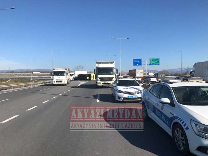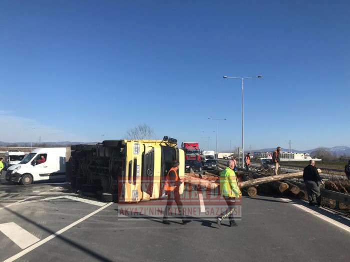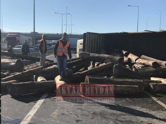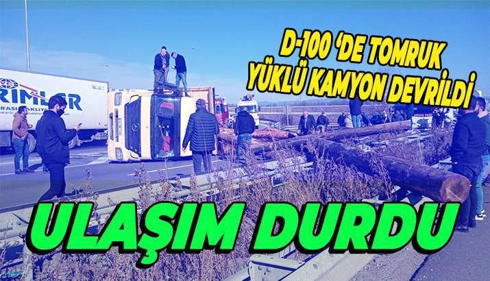 D-100 KARAYOLUNDA TOMRUK YÜKLÜ KAMYON DEVRİLDİ