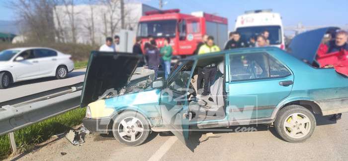 D100 Karayolunda direksiyon hakimiyetini kaybeden sürücü bariyere çarptı kazada 2 kişi yaralandı.