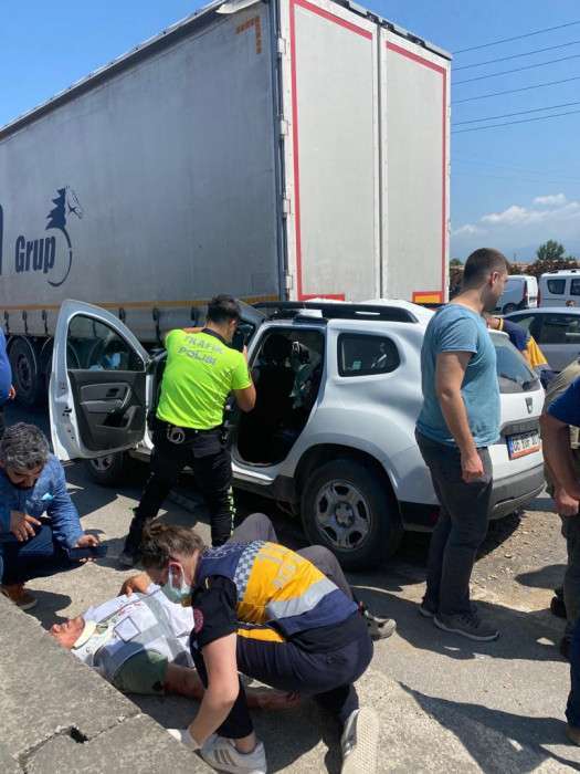 Kaza, d-100 karayolunun Pekşenler kesiminde akyazı yönünde meydana geldi. Sürücüsünün ismi öğrenilemeyen bir otomobil, önünde yavaşlayan tırın dorsesinin altına girdi. Feci kazada otomobilde 3 kişi araçta sıkışarak yaralandı. İhbar üzerine kaza yerine itfaiye ve 112 ekipleri sevk edildi. Kısa sürede kaza yerine gelen ekipler, araçta sıkışan 3 kişiyi çalışma sonucu çıkardı. İlk müdahaleleri olay yerinde yapılan yaralılar, ambulanslarla Sakarya Eğitim ve Araştırma Hastanesine kaldırıldı. Yaralılardan ikisinin durumunun ağır olduğu öğrenildi. Kaza ile ilgili inceleme başlatıldı.