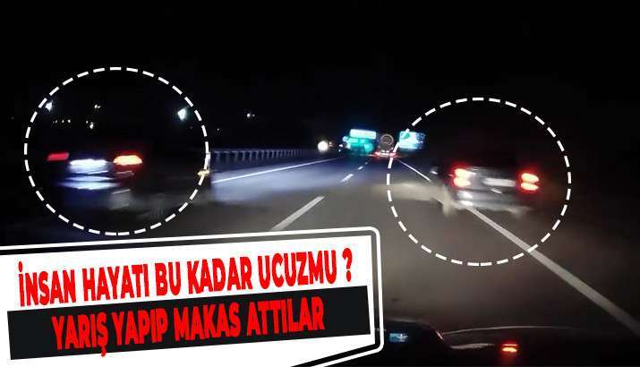 O anları kaydeden araç D140 karayoluna normal seyrederken aynı yönde ilerleyen iki otomobil sağından ve solundan hızla geçti. Sağdan sollayıp makas atan otomobil emniyet şeridi ve bariyer arasından çıkmayı önde ilerleyen tankere çarpmaktan son anda kurtuldu.