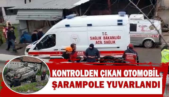 D140 Karayolunda meydana gelen trafik kazasında direksiyon hakimiyeti kaybolan otomobil şaraampole yuvarlandı.
