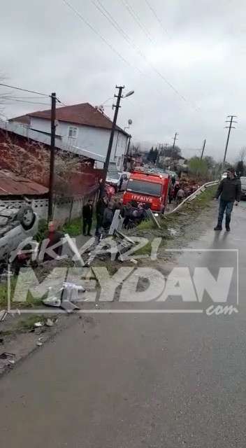 Kaza D140 Karayolu Adapazarı istikameti Erdoğdu kavşağı yakınlarında meydana geldi. Edinilen bilgilere göre S.T. yönetimindeki 54 AIG *** plakalı otomobil sürücüsünün direksiyon hakimiyetini kaybeymesim sonucunda bariyerlere çarpan otomobil takla atarak şarampole yuvarlandı. Haber verilmesi üzerine olay yerine itfaiye, sağlık ve jandarma ekipleri sevk edildi. SAKTİM’inde çalışmalara destek verdiği kazada iki kişi kendi imkanlarıyla çıkarken araç içinde sıkışan sürücüyü itfaiye ve saktim ekipleri sıkıştığı yerden kurtarılarak ambulansla Akyazı Devlet Hastanesine kaldırıldı.