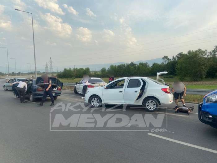 D140 Karayolu Balbalı mevkiinde meydana gelen kazada Edinilen bilgilere göre B.A. yönetimindeki 67 ABC *** plakalı otomobil ile aynı yönde seyreden K.C. idaresinden 54 GA ***plakalı otomobile arkadan gelen sürücüsünün ismi öğrenilemeyen 54 AA *** plakalı otomobil çarptı kazada Araç içerisinde bulunan 1 yaşındaki N.K. ile D.D. yaralandı.