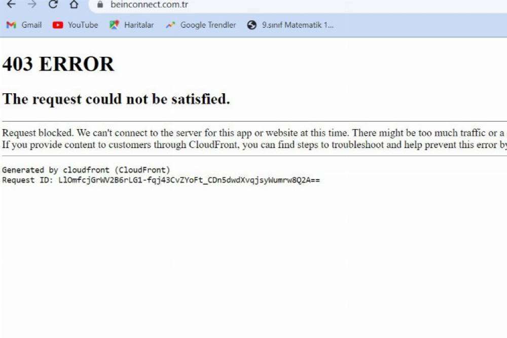 Çaykur Rizespor ile Fenerbahçe arasında oynanan lig maçının ilk yarısı sonunda Digitürk’ün web ve mobilden izlenen beinconnect.com.tr, 403 hatası vererek taraftarı isyan ettirdi.
