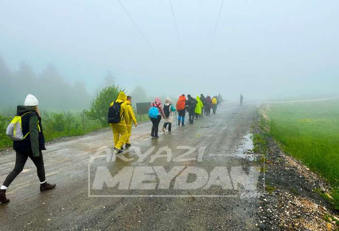 İki yayla arasındaki mesafeyi trekking ile bazı noktaları zorlu olan parkurlardan geçen doğa tutkunları yoğun sis ve yağışa rağmen iyi bir performans ortaya koydu. Büyükşehir Belediyesi’nin uzman kadrosu tarafından koordine edilen yürüyüşte sakatlıkların önüne geçilmesi için egzersizler yapıldı.