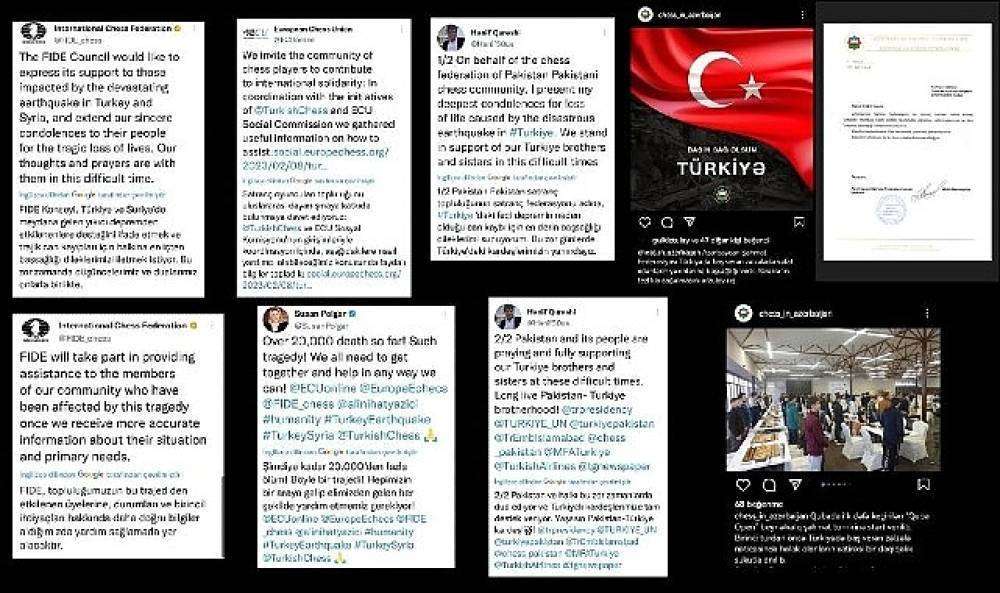 Azerbaycan Satranç Federasyonu’nun resmi Instagram hesabından yapılan paylaşımda ise ülkemizde hayatını kaybeden vatandaşlarımızın yakınlarına başsağlığı, yaralılara ise acil şifalar dilendi. Federasyon ayrıca ülkede gerçekleştirilen satranç turnuvası öncesi depremde hayatını kaybeden vatandaşlarımız öncesi saygı duruşunda bulunduklarını da açıkladı.
