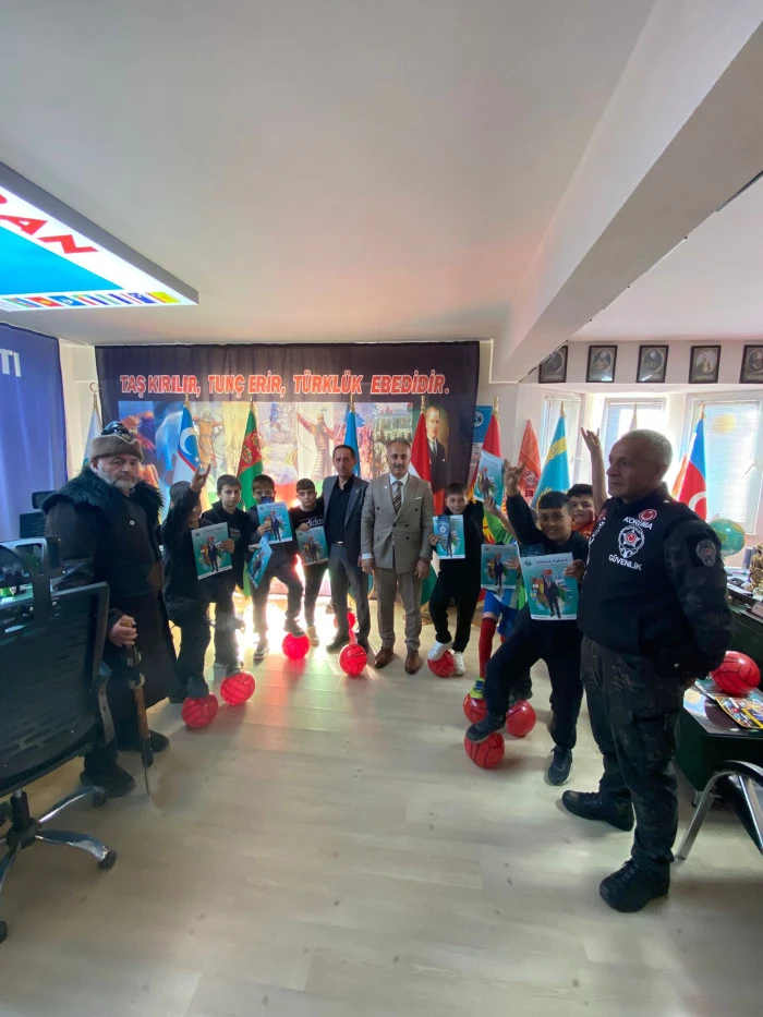 Ziyaretin sonunda, Dünya Turan Yardımlaşma Derneği Genel Başkanı Sayın İlyas Kulaksız, çocuklara günün anısına çeşitli hediyeler takdim etti. Çocuklara futbol topu, şanlı Türk bayrağı, derneğin flamaları, not defterleri ve dernek logolu kalemler hediye edildi.