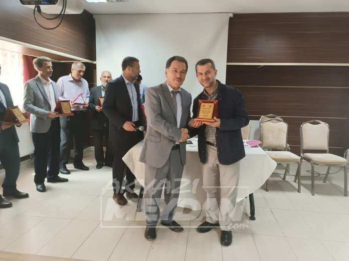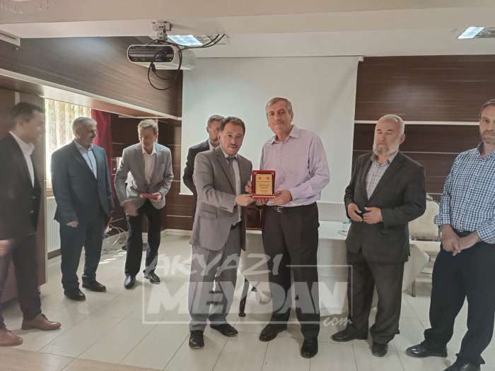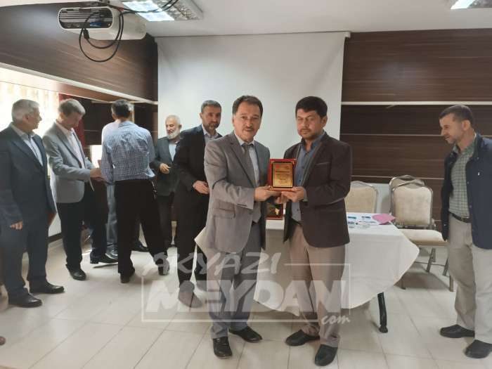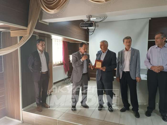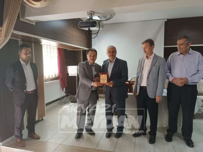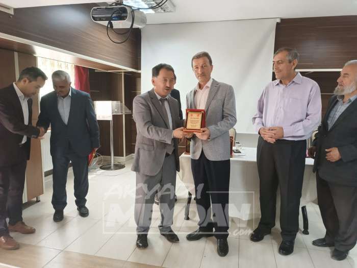 Güncel konuların ardından İlçemizde Hizmet sürelerini tamamlayarak emekli olan görevlilerimize İlçe Müftümüz Kamil Özcan Demir tarafından Plaket takdim edildi.
