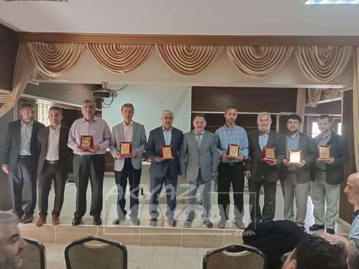 İlçe Müftümüz Kamil Özcan Demir "Plaket Takdim Töreni"nde "Değerli Meslektaşlarımız bu kubbede hoş bir seda bıraktılar" diyerek emekliye ayrılan din görevlilerimize yaptıkları hizmetlerden dolayı teşekkür ederek emeklilik hayatlarında sağlık ve afiyet temennisinde bulundu.