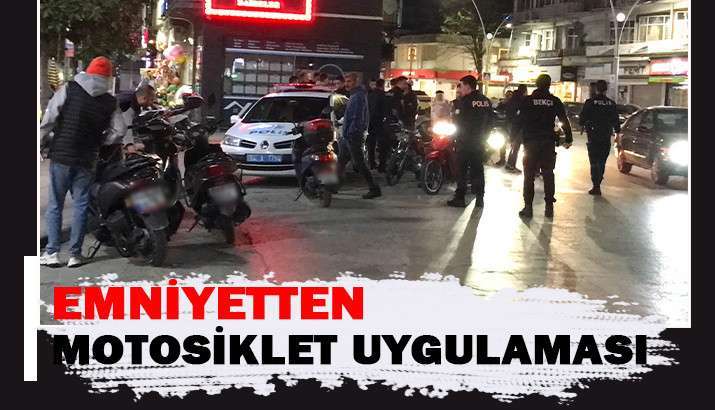 Ada caddesi üzerinde oluşturulan uygulama noktasında Polis ve gece bekçileri yapılan uygulamada motosiklet sürücülerine yönelik yaptığı uygulamada KASK, abartı egzoz, ehliyet, plaka tescil kaydı, şasi numarası denetimi yapıldı. Eksikleri bulunan sürücülere cezai işlem uygulandı.