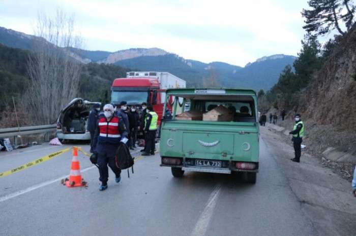 Bolu’nun Göynük ilçesinde, otomobil ile kamyonun çarpışması sonucu aynı aileden 2’si çocuk 4 kişi hayatını kaybetti. Aziz Asker (48) idaresindeki 34 UH 5566 plakalı otomobil, Bilecik-Nallıhan Sakarya kara yolu Sifyanlar köyü mevkisinde, karşı yönden gelen Erdinç Ş’nin kullandığı 14 ER 932 plakalı kamyonla çarpıştı.